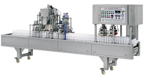 機(jī)組特征:本機(jī)為半自動(dòng)經(jīng)濟(jì)型塑瓶封口機(jī)。其造作工藝:人工放瓶、自動(dòng)校瓶、自動(dòng)充填、人工放鋁蓋、自動(dòng)封口。造作方便,產(chǎn)量高,便于更換瓶子,一機(jī)多用。